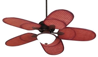 Spice up your outdoor area with this tropical ceiling fan from Casa Vieja. Rust finish with molded ABS dark rattan blades. 3-speed motor with pull chain. Frosted white glass light kit. UL listed for wet locations. 172x17 motor and standard 6" downrod. Cap included for non light kit use. Suitable for both indoor and outdoor use.